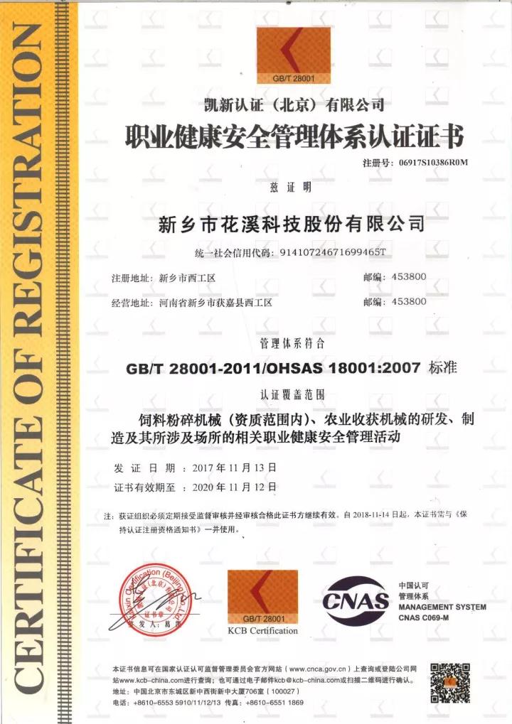 2017年11月13日,花溪公司獲得了環(huán)境管理體系(ISO14001)認(rèn)證證書(shū)和職業(yè)健康安全管理體系(OHSAS18001)認(rèn)證證書(shū)。